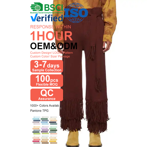 2023 nuevos pantalones personalizados de cintura alta de punto con borlas para hombre rojo marrón 100% algodón cintura media con cierre elástico